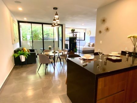 En Torre B; tiempo de entrega, mayo a junio de 2024 con las siguientes amenidades: Fogateros, gym, salón de yoga y alberca.